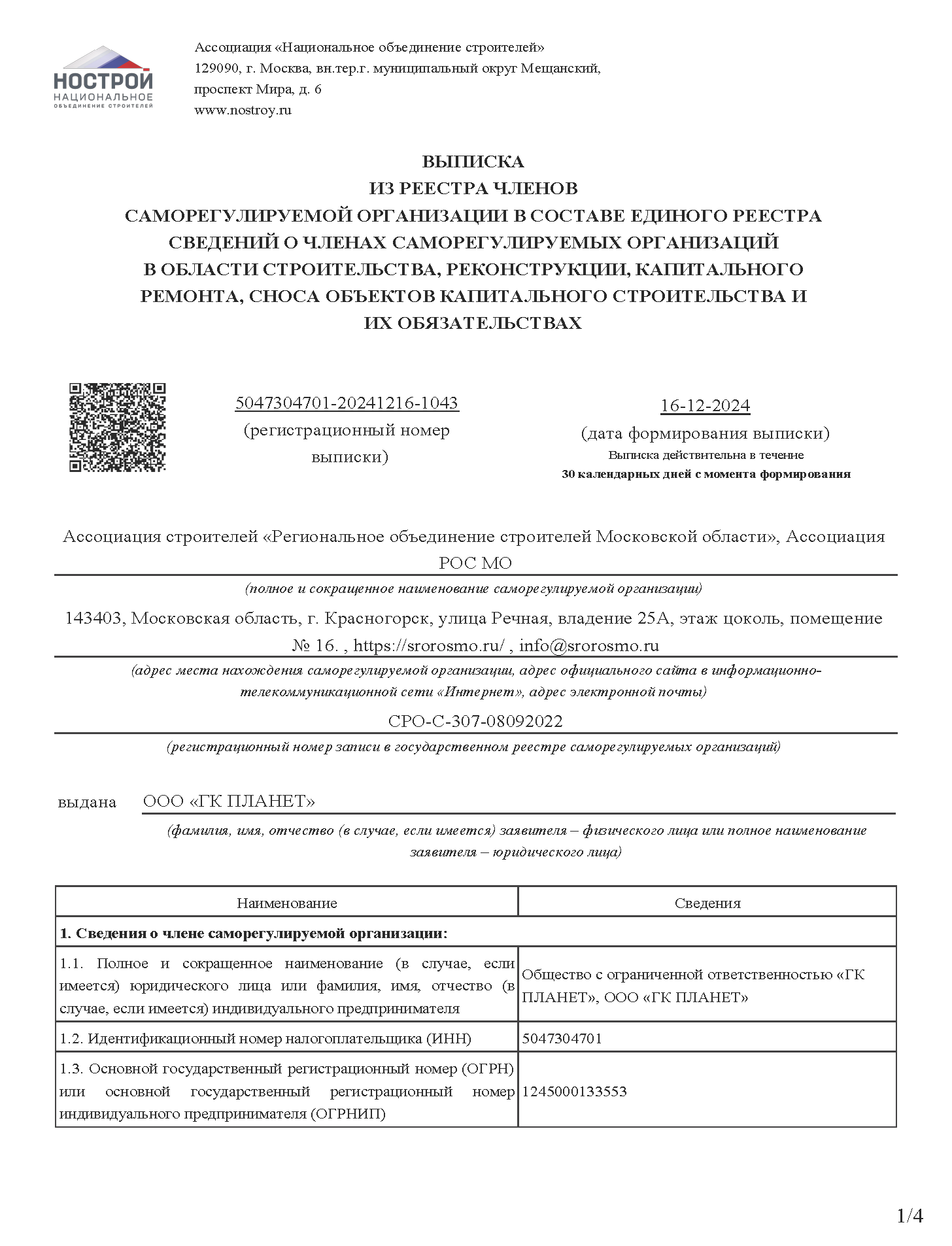 Номер в реестре СРОАссоциация строителей «Региональное объединение строителей Московской области»СРО-С-307-08092022
